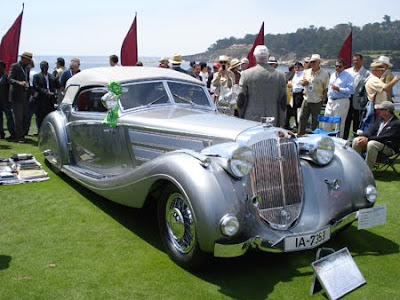 We arived early to poke around the shops and take in the beautiful european village feel of Carmel. We did a little shopping and then you could hear them as they came down Ocean Avenue... what an experience. Sure you can see these cars on the 18th fairway of Pebble Beach, but seeing them drive down the street and allow the general public to interact with the cars and their owners was a joy. Bentleys, Bugattis, Alfas, Mercedes, and even an unrestored Shelby Cobra! People not only own and pamper these million dollar cars, they actually drive them. After all of my years revering vintage cars and living with the fear of breathing on them wrong, I am changed. These people have shown how cars should be appreciated. The are an approachable form of design, engineering and beauty. People need the chance to appreciate them.
